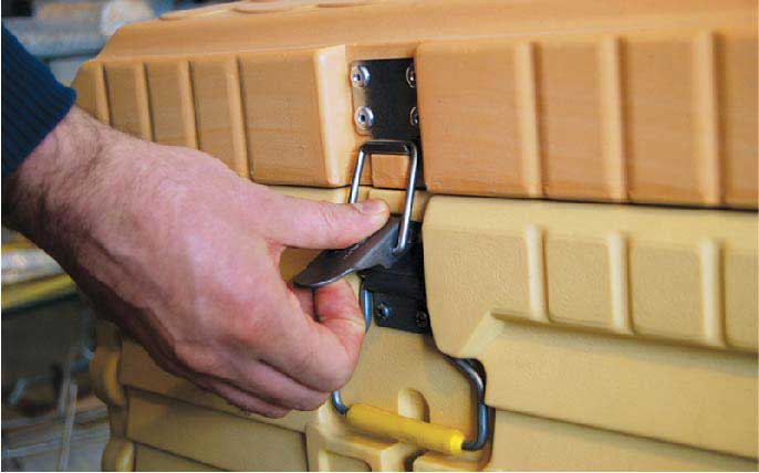Upper and lower castellated support for the frames can be reversed if not required. No need for pre-transport fixing operations.